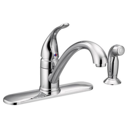 Moen chateau single handle kitchen faucet with side spray in polished chrome 136 39 moen stainless steel drain assembly plug and cap 3 in.